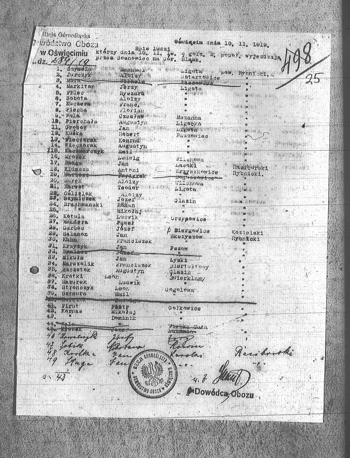 Brachmanski, Mikołaj; Brachmanski, Roman; Filec, Ryszard; Firut, Piotr; Garbos, Józef; Groboż, Jan; Jurczyk, Alojzy; Kaczmarczyk, Emil; Karwat, Teodor; Klimsza, Antoni; Kornas, Dominik; Kornas, Mikołaj; Kotula, Ludwik; Kowalczyk, Józef; Krotka, Jan; Krotki, Leon; Krzyżyk, Jan; Kuczera, Franciszek; Kuhn, Franciszek; Kuśka, Robert; Mandera, Paweł; Marek, Alojzy; Markiton, Jerzy; Marszolik, Franciszek; Mazurek, Ludwik; Mikuła, Jan; Mrozek, Ludwig; Ośliżlok, Alojzy; Piecha, Florian; Pierchała, Augustyn; Rozga, Jan; Salamon, Jan; Sługa, Jan; Sobota, Alojzy; Stronczyk, Leon; Szczotek, Augustyn; Szymela, Emanuel; Szymiczek, Józef; Szymura, Emil; Wala, Czesław; Wieczorek, Augustyn; Wieczorek, Konrad; |