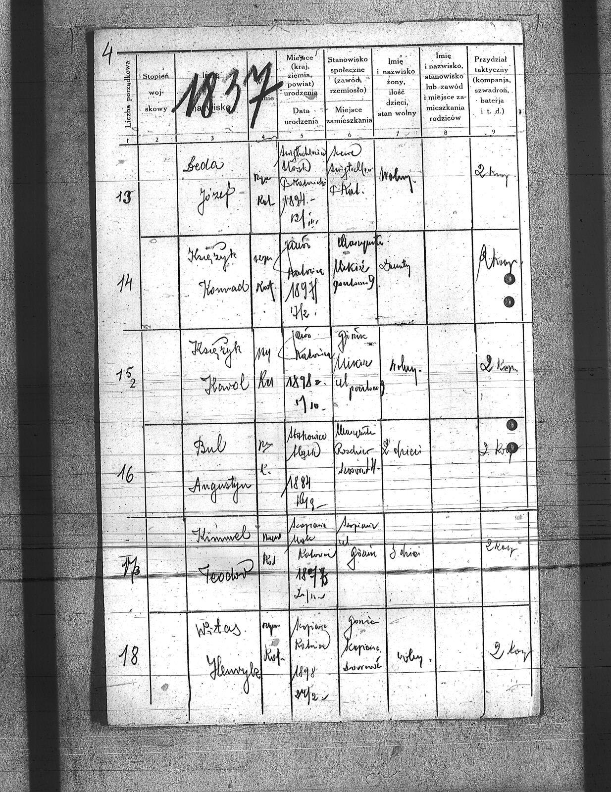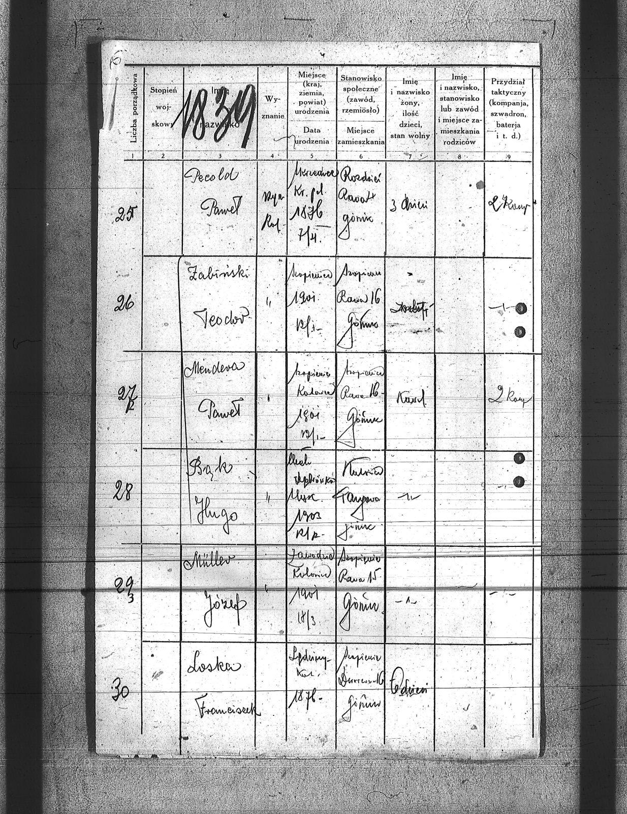 Achtelik, Franciszek; Bąk, Hugo; Bogacki, Jan; Bul, Augustyn; Cetlawa, Karol; Chwałek, Jan; Cichoń, Wilhelm; Dąbrowski, Tadeusz; Deda, Józef; Domagała, Ignacy; Dusza, Robert; Flasiński, Władysław; Fuchs, Józef; Gubała, Juljan; Handy, Karol; Henzel, Henryk; Janusz, Adam; Kaczorowski, Jan; Kieromin, Marcin; Kimmel, Teodor; Kokoszka, Alojzy; Kornki, Karol; Kościułek, Jan; Księżyk, Karol; Księżyk, Konrad; Księżyk, Wilhelm; Loska, Franciszek; Malisz, Lucjan; Matyszkiewicz, Antoni; Mendera, Paweł; Mol, Konstanty; Morawski, Jan; Muller, Józef; Ozuk, Jan; Pecold, Paweł; Ryht, Franciszek; Senak, Jan; Sośnierz, Jan; Stysz, Alojzy; Syrek, Tomasz; Witas, Henryk; Żabiński, Teodor; |