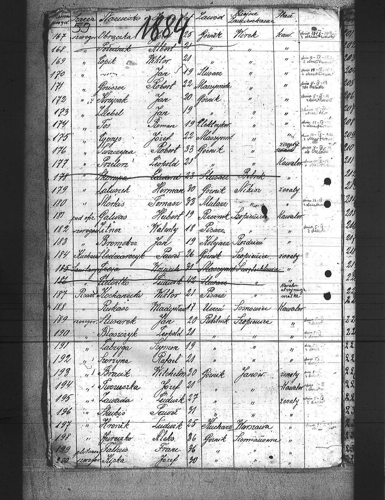 Babicki, Kazimierz; Barburka, Antoni; Bartoszek, Jan; Bedorz, Jerzy; Bielewicz, Jan; Bienek, Ryszard; Błaszczyk, Leopold; Bombelka, Ryszard; Bonecki, Henryk; Borburka, Klemens; Botor, Tomasz; Bracik, Wilchelm; Bromocz, Jan; Brzozok, Michał; Brzozok, Wincenty; Buczek, Wilchelm; Bujok, Ignacy; Ciałkowski, Józef; Cicheljusz, Maks; Cichoń, Franciszek; Cichoń, Jan; Cielontko, Ludwik; Cop, Walenty; Copik, Hubert; Copik, Jan; Copik, Wiktor; Cyprys, Józef; Czaja, Wojciech; Danek, Antoni; Dąbek, Antoni; Dąbrowski, Kazimierz; Długaj, Stefan; Dryndosz, Teodor; Dudek, Franciszek; Dylda, Mikołaj; Dyra, Paweł; Ekord, Józef; Fabjan, Józef; Falkus, Franciszek; Fitkiewicz, Józef; Franckowiak, Józef; Franckowicz, Jakób; Franecki, Jan; Frydrych, Aleks; Gabryś, Franciszek; Galwas, Hubert; Gawroński, Zygmund; Gębarski, Bronisław; Giello, Edward; Gilza, Robert; Golecz, Jan; Golik, Józef; Gorek, Józef; Górecki, Herman; Górecki, Jan; Gruk, Józef; Gruszcz, Robert; Gurecki, Jan; Guzy, August; Guzy, Jan; Hande, Wilhelm; Haśnik, Ludwik; Holewa, Augustyn; Holik, Alojzy; Hons, Bernard; Hronik, Ludwik; Itner, Wilchelm; Jagiełła, Franciszek; Janota, Augustyn; Janota, Sylwester; Jaromin, August; Jaworski, Tadeusz; Jochymek, Wojciech; Jochymski, Karol; Juraszczyk, Ernest; Jureczko, Aleksander; Kalkowski, ; Kałuża, Ałgust; Kamiński, Antoni; Kamiński, Feliks; Kiny, Jan; Kipka, Józef; Kisiel, Andrzej; Klak, Paweł; Klakus, Jan; Klimek, Leopold; Klisz, Karol; Kochanecki, Wiktor; Koldysz, Paul; Kołton, Franciszek; Kołton, Józef; Koperski, Władysław; Korwat, Jan; Korzonek, Józef; Kosełka, Stanisław; Kowalski, Melchior; Kowalski, Stanisław; Kowol, Józef; Krzykała, Alojz; Krzysak, Jan; Kubiczak, Stefan; Kubiczok, Stefan; Kubiór, Teofil; Kuliga, Rufin; Kulik, Stefan; Labryga, Szymon; Latosik, Paweł; Latuszek, Herman; Ledwoń, Karol; Lewandowski, Ryszard; Lipiński, Henryk; Lipiński, Józef; Lisiecki, Bolesław; Liszecki, Wincenty; Lok, Ludwik; Loska, Karol; Łabus, Jan; Łosa, Jan; Malik, Piotr; Mamok, Franciszek; Marszalski, Augustyn; Marzec, Karol; Matuszczyk, Florian; Millner, Ferdynand; Morawiec, August; Morkis, Tomasz; Mrowiec, Emil; Musioł, Albert; Musioł, Klemens; Nawrot, Jan; Nawrot, Józef; Nawrot, Paweł; Niezler, Paweł; Obrączka, Józef; Oleś, Józef; Opara, Józef; Opuchlik, Jakób; Orzeł, Jan; Ostrowski, Jan; Paprotny, Aleksy; Pardola, Hugo; Pasek, Andrzej; Patalok, Emanuel; Pendracki, Józef; Pfeifer, Władysław; Piekarczyk, Piotr; Pietrowiak, Sylwester; Pilc, Gustaw; Pilosz, Jan; Piotrowski, Zygmund; Plewniak, Jan; Płasa; Polkowski, Józef; Poll, Emil; Połednik, Albert; Porol, Franciszek; Potyka, Edward; Prejzner, Jan; Prudło, Anzelm; Przelorz, Leopold; Pyka, Tomasz; Pyras, Jan; Pytlewski, Kazimierz; Ratka, Alojzy; Rukasz, Władysław; Ryziewicz, Zbigniew; Rzechan, Paweł; Rzepus, Jan; Sadowskki, Stanisław; Sikorski, Jan; Skipioł, Józef; Skorupa, Edward; Skorupa, Teodor; Skowroński, Stanisław; Skrzydło, August; Skubisz, Franciszek; Skubiś, Paweł; Slotosz, Jan; Słabczyński, Walenty; Smuda, Jan; Smulewicz, Feliks; Sobański, Józef; Sobczyk, Henryk; Sok, Ludwik; Sok, Paweł; Sołtysik, Ludwik; Sorek, Paweł; Sowa, Jan; Stanisławski, Stanisław; Stokłosa, Teodor; Stokosa, Piotr; Stolarz, Paweł; Sulik, Jerzy; Surowczyk, Tomasz; Susek, Tomasz; Swaczyna, Robert; Szafarczyk, Jan; Szaja, Franciszek; Szczurek, August; Szczyrba, Karol; Szorżyna, Rafael; Szwiec, Erich; Śledziarczyk, Karol; Śledziarczyk, Paweł; ślusarek, Jan; Świtała, Franciszek; Tomala, Jan; Tomanek, Maks; Tos, Roman; Tworuszka, Franciszek; Tworuszka, Józef; Tworuszka, Ludwik; Ulman, Antoni; Walter, Józef; Waluga, Jan; Weszka, Jan; Weszka, Piotr; Wiechoczek, Walenty; Wojsz, Czesław; Wybraniec, Wilchelm; Zajutro, Józef; Zawada, Ludwik; Zdebel, Jan; Ziebiera, Kornel; Zieliński, Walenty; Zimnioł, Piotr; Zitner, Walenty; Zycha, Piotr; Zygmunt, Stanisław; Żogala, August; |