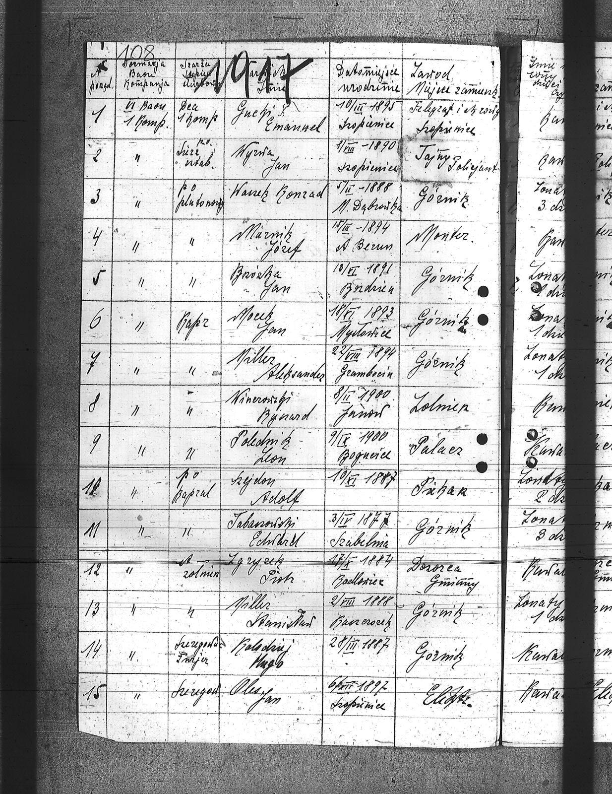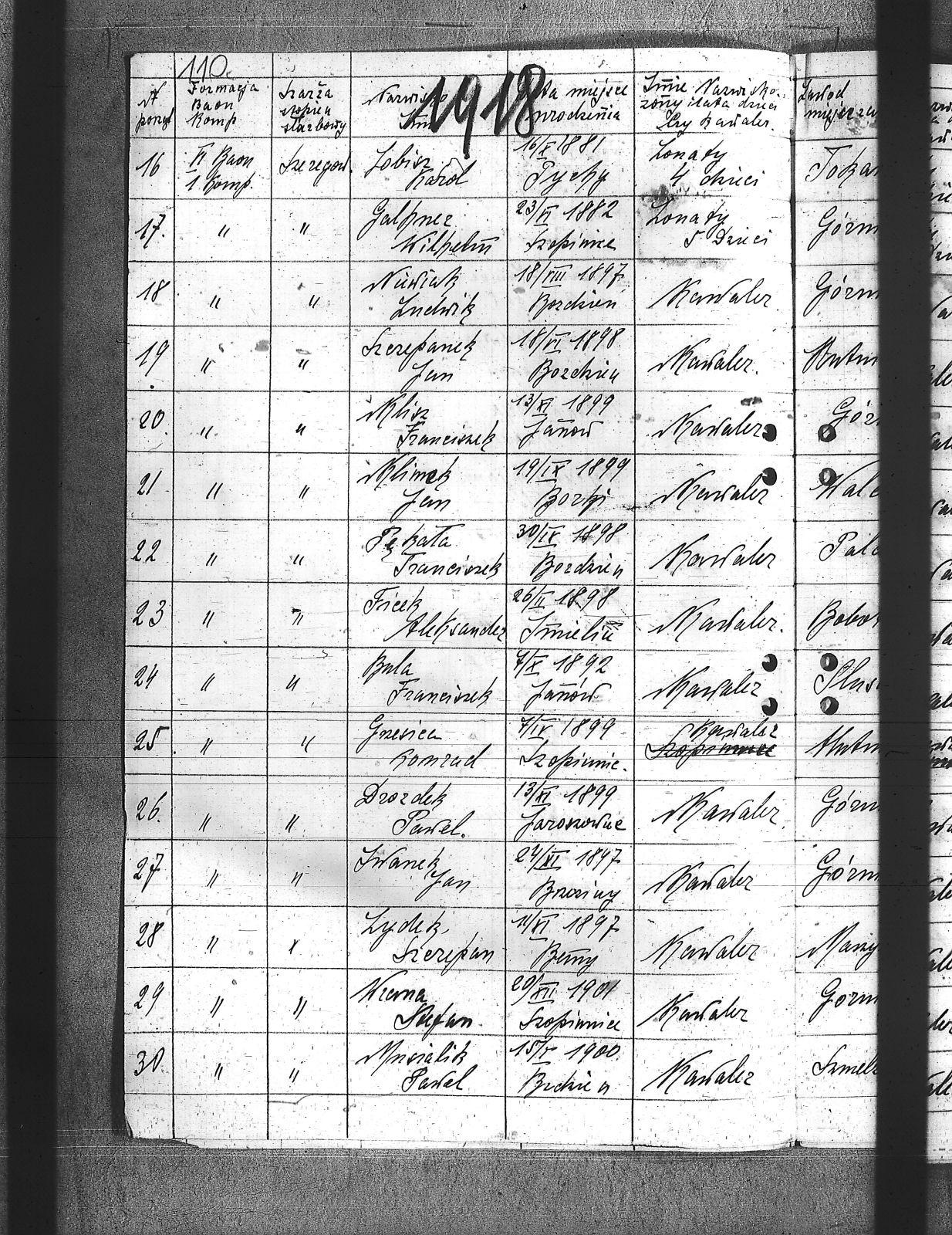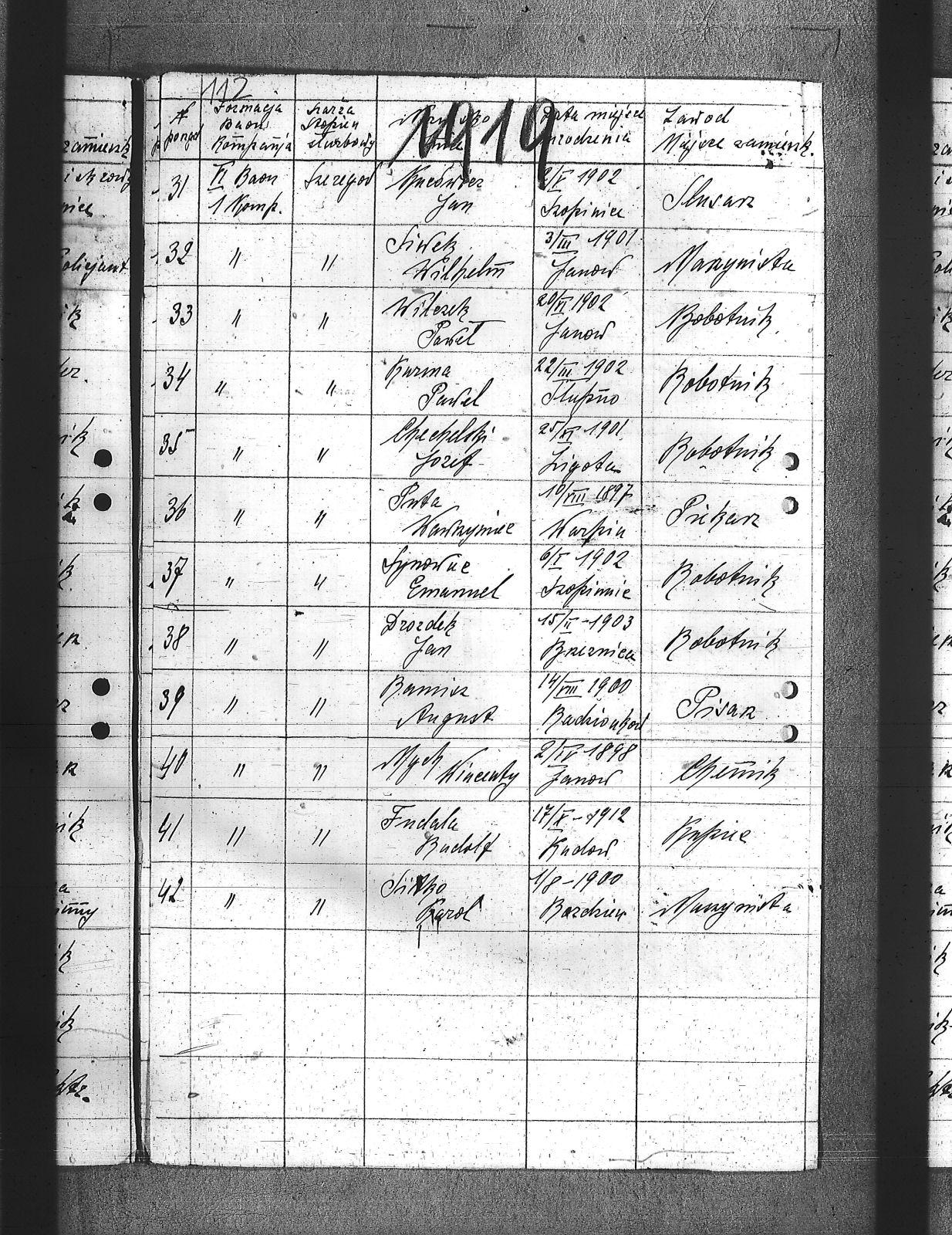 Bamisz, August; Brzózka, Jan; Bula, Franciszek; Chechelski, Józef; Drozdek, Jan; Drozdek, Paweł; Ficek, Aleksander; Fudala, Rudolf; Galbner, Wilhelm; Grzesica, Konrad; Gucki, Emanuel; Iwanek, Jan; Klimek, Jan; Klisz, Franciszek; Kolodziej, Hugo; Kucowicz, Jan; Kuzma, Paweł; Lobisz, Karol; Maznik, Józef; Miller, Aleksander; Miller, Stanisław; Mocek, Jan; Musialik, Paweł; Mych, Wincenty; Nuwiak, Ludwik; Olesy, Jan; Pękała, Franciszek; Poledniok, Leon; Puta, Wawrzyniec; Sitko, Karol; Siwek, Wilhelm; Synowiec, Emanuel; Szczepanek, Jan; Szejdon, Adolf; Tabaszowski, Edward; Waszek, Konrad; Wierna, Stefan; Wilczek, Paweł; Winczowski, Ryszard; Wyrwa, Jan; Zgryzek, Piotr; Zydek, Szczepan; |