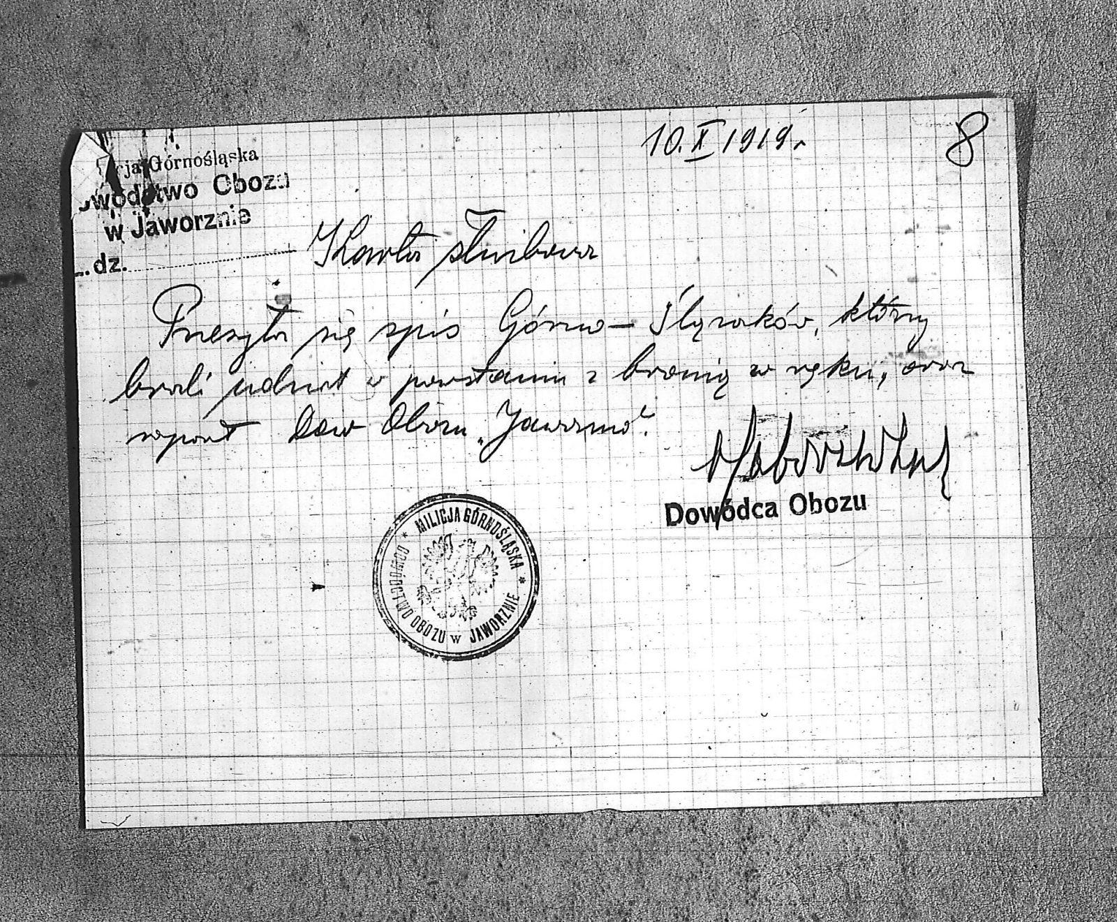 Instytucje Milicja Górnośląska. Obóz w Jaworznie. Dowództwo