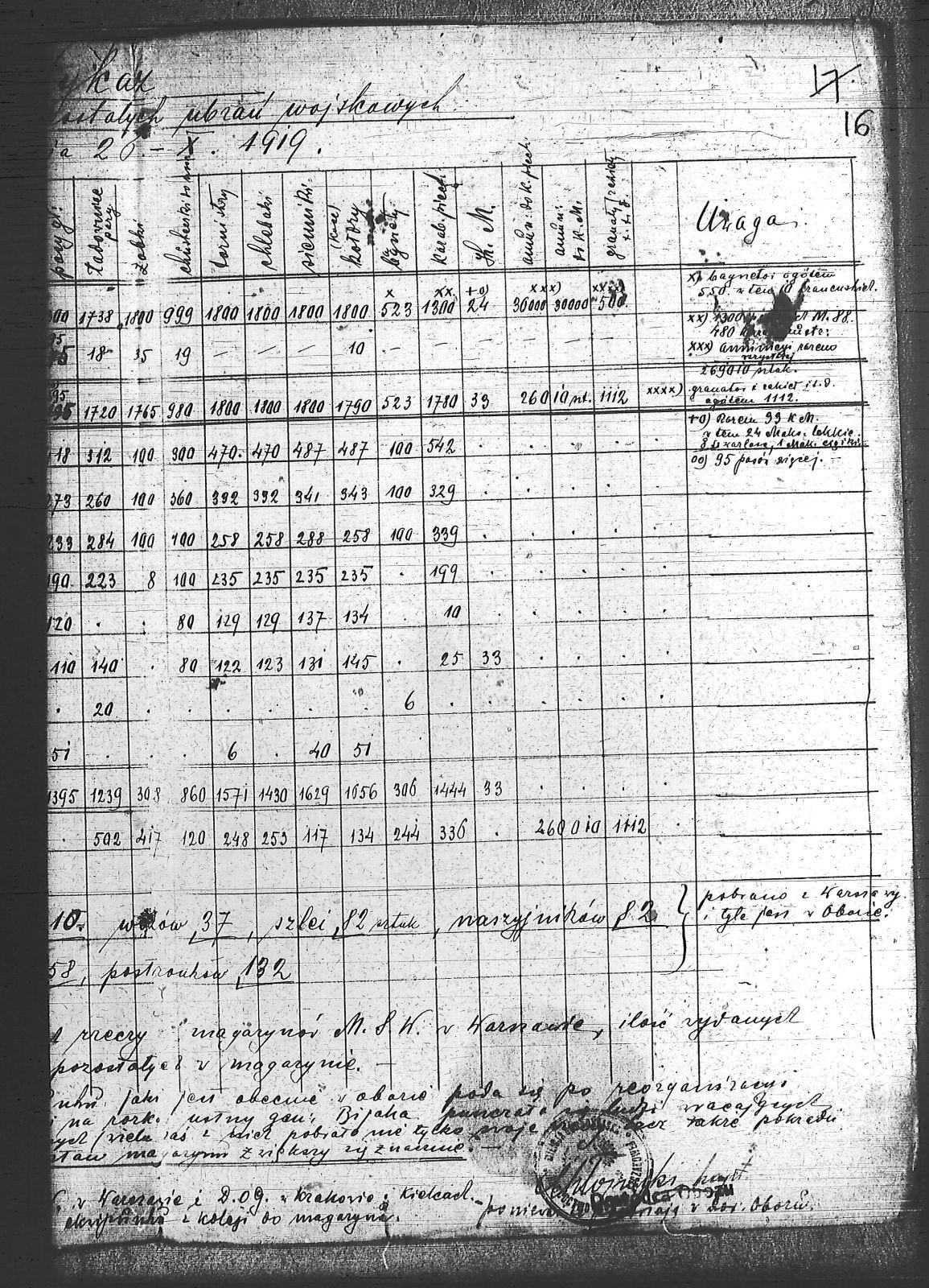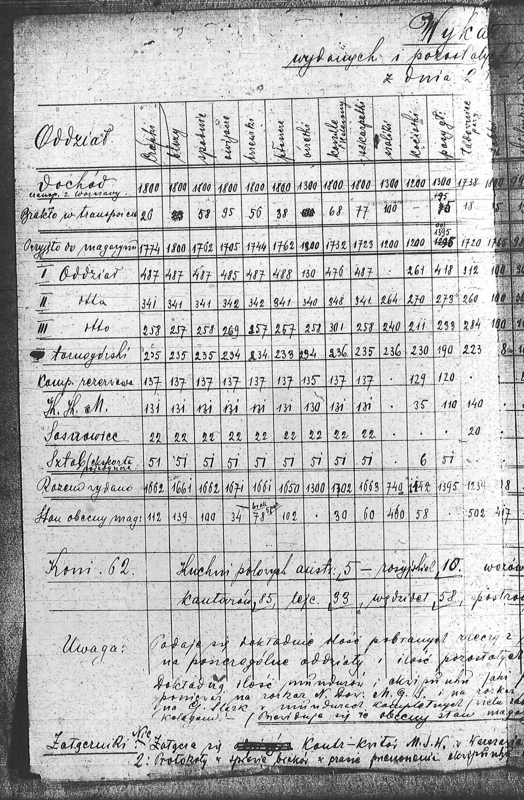 Tytuł Wykaz wytartych i pozostałych ubrań wojskowych