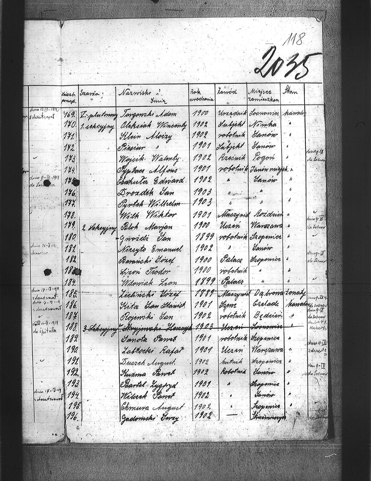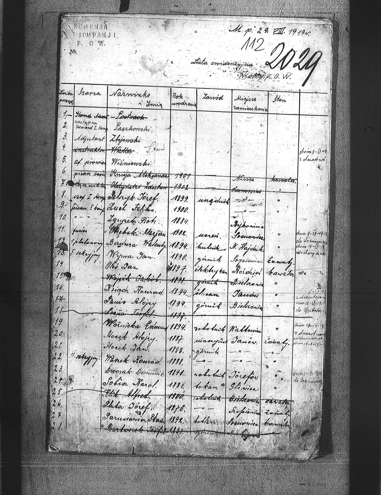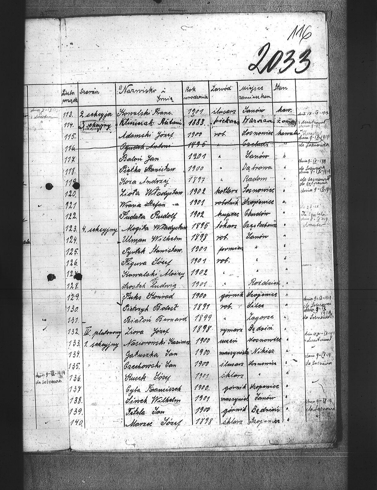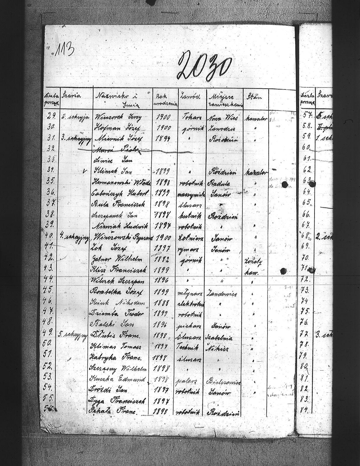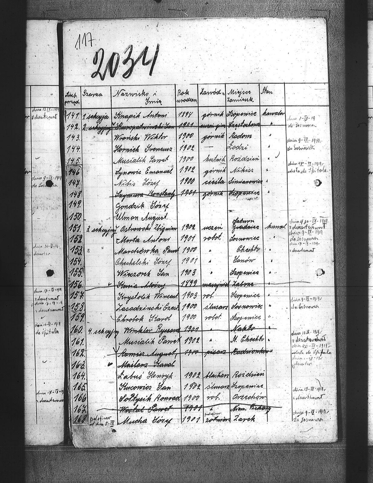 Adamski, Józef; Badura, Walenty; Baloń, Jan; Balski, Jan; Bara, Franciszek; Barański, Józef; Bartel, Zygfryd; Bartoszek, Teofil; Bassi, Leopold; Bereza, Stefan; Białoń, Bernard; Biczysko, Antoni; Bieroński, Emanuel; Blok, Marjan; Bombelka, Józef; Borowicki, Władysław; Brombosz, Paweł; Brzoska, Jan; Buczek, Józef; Bujok, Ignacy; Bula, Franciszek; Cabończyk, Hubert; Chachuła, Edward; Chechelski, Józef; Chmura, August; Cholewa, Augustyn; Chrobok, Karol; Cyba, Franciszek; Cypionka, Aloizy; Czech, Wilhelm; Czechowski, Jan; Dłubis, Franciszek; Drozdek, Jan; Drozdek, Paweł; Dróżdż, Jan; Drzyzga, Franciszek; Dudek, Franciszek; Dukat, Jan; Duszek, August; Dworak, Dominik; Dyga, Franciszek; Dytko, Paweł; Dziemba, Teodor; Dziurowicz, Walery; Fabian, Józef; Fatela, Jan; Ficek, Aleks; Figura, Józef; Fila, Jan; Flak, Stefan; Fudała, Rudolf; Fuks, Jan; Fuks, Konrad; Gadomski, Jerzy; Galoch, Aloizy; Gałuszka, Jan; Gatner, Wilhelm; Golda, Szczepan; Gondzik, Józef; Grzesica, Konrad; Gucki, Emanuel; Gwóźdź, Jan; Habryka, Franciszek; Hermanowski, Władysław; Hofman, Józef; Hornich, Ireneusz; Huj, Jan; Iwanek, Jan; Janota, Paweł; Jeleń, Szymon; Jędraś, Piotr; Jędryczko, Jan; Jochemski, Karol; Jurecko, Aleksy; Karkoszka, Feliks; Kciuk, Nikodem; Kempa, Jan; Kiny, Jan; Kita, Stanisław; Klein, Aloizy; Klik, Alfred; Klimas, Tomasz; Klimczak, Antoni; Klimek, Jan; Klisz, Franciszek; Knapik, Antoni; Knapik, Augustyn; Knieja, Aleksander; Kokosza, Aleksander; Kołodziej, Hugo; Kornorzycki, Nikodem; Kościelny, Henryk; Kota, Franciszek; Kowalczewski, Marjan; Kowalski, Aloizy; Kowalski, Franciszek; Kownacki, Jan; Koza, Andrzej; Krystolik, Wincent; Ksiądz, Konrad; Kubik, Teofil; Kucia, Aloizy; Kucowicz, Jan; Kudelski, Zygmund; Kuliga, Rufin; Kulisz, Stefan; Kundla, Wiktor; Kurdziej, Paweł; Kuropatwiński, Jan; Kusek, Józef; Kuszka, Edmund; Kuźma, Paweł; Latuszek, Herman; Lipski, Leon; Lizoń, Józef; Lizoń, Teodor; Ludziorczyk, Edward; Łabuś, Henryk; Marchewka, Paweł; Markowicz, Paweł; Maroń, Piotr; Marszalski, Augustyn; Marszołek, Emanuel; Marzec, Józef; Maślorz, Karol; Meszek, Jan; Miernik, Józef; Mierzejewski, Marjan; Miler, Aleksander; Miler, Stanisław; Mogiła, Władysław; Mol, Franciszek; Morta, Antoni; Mozek, Alojzy; Mozek, Jan; Mucha, Józef; Musialik, Paweł; Musiał, Teodor; Mych, Wimcenty; Nasiorowski, Kazimierz; Nibis, Józef; Niesyto, Emanuel; Niewiak, Ludwik; Nokiel, Konrad; Nowakowski, Józef; Ogudek, Antoni; Oldyński, Zdzisław; Oleksiak, Wincenty; Oleś, Jan; Ostrowski, Zbigniew; Otrębski, Marian; Pałasz, Józef; Pałka, Karol; Panis, Alojzy; Paprotny, Aleksy; Parusiewicz, Stanisław; Paszkowski; Patałąk, Emanuel; Pelszyk, Józef; Pękała, Franciszek; Piesiur, Aloizy; Pietrzyk, Bolesław; Piętka, Stanisław; Pilc, Gustaw; Plusczyk, Jerzy; Pluta, Jóżef; Postrach; Puta, Wawrzyniec; Pypłacz, Alfons; Pyrtek, Stanisław; Pyrtek, Wilhelm; Ramisz, August; Rojewski, Jan; Sergiew, Michał; Sitko, Karol; Siwek, Wilhelm; Siwiec, Jan; Słabczyński, Walenty; Smędek, Kasper; Sobczvk, Wilhelm; Sobisz, Karol; Sołtysik, Konrad; Somer, Jerzy; Sosna, Teofil; Stokłosa, Piotr; Stolarz, Alfons; Stryjewski, Henryk; Swinoga, Franciszek; Synowic, Emanuel; Szczakowski, Stanisław; Szczepanek, Jan; Szczęsny, Wilhelm; Szejdon, Adolf; Szlachta, August; Szostek, Ludwik; Szymura, Konstanty; świtała, Paweł; Tabaszowski, Edward; Teper, Antoni; Torbus, Jan; Torgowski, Adam; Ulman, August; Ulman, Wilhelm; Walter; Walus, Paweł; Waszek, Konrad; Wąslik, Wincenty; Wdowiak, Leon; Widera, Stefan; Wieczorek, Jan; Wieczorek, Jerzy; Wilczek, Paweł; Wilczek, Szczepan; Wilk, Wiktor; Winczowski, Ryszard; Winiarski, Wacław; Winkler, Ryszard; Wista, Józef; Wiśniewski; Witanski, Sylwester; Wojcik, Walenty; Wostal, Paweł; Woźnicka, Edmund; Wójcik, Jakób; Wrona, Stefan; Wroński, Wiktor; Wyleżoł, Paweł; Wyrwa, Jan; Zabłocki, Rafał; Zasadziński, Czesław; Zbijewski; Zgryzek, Piotr; Ziebiera, Kornel; Zieliński, Józef; Zioła, Władysław; Ziora, Józef; Zok, Józef; Zuch, Feliks; Zydek, Szczepan; |