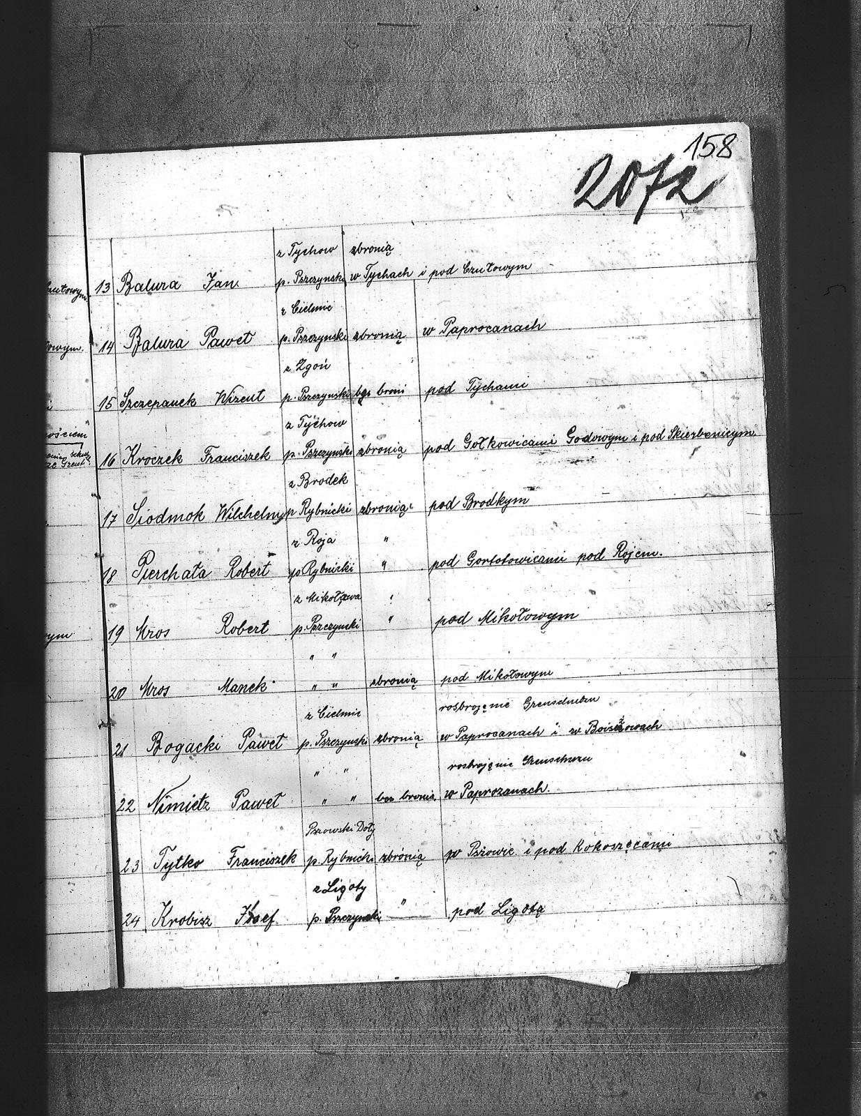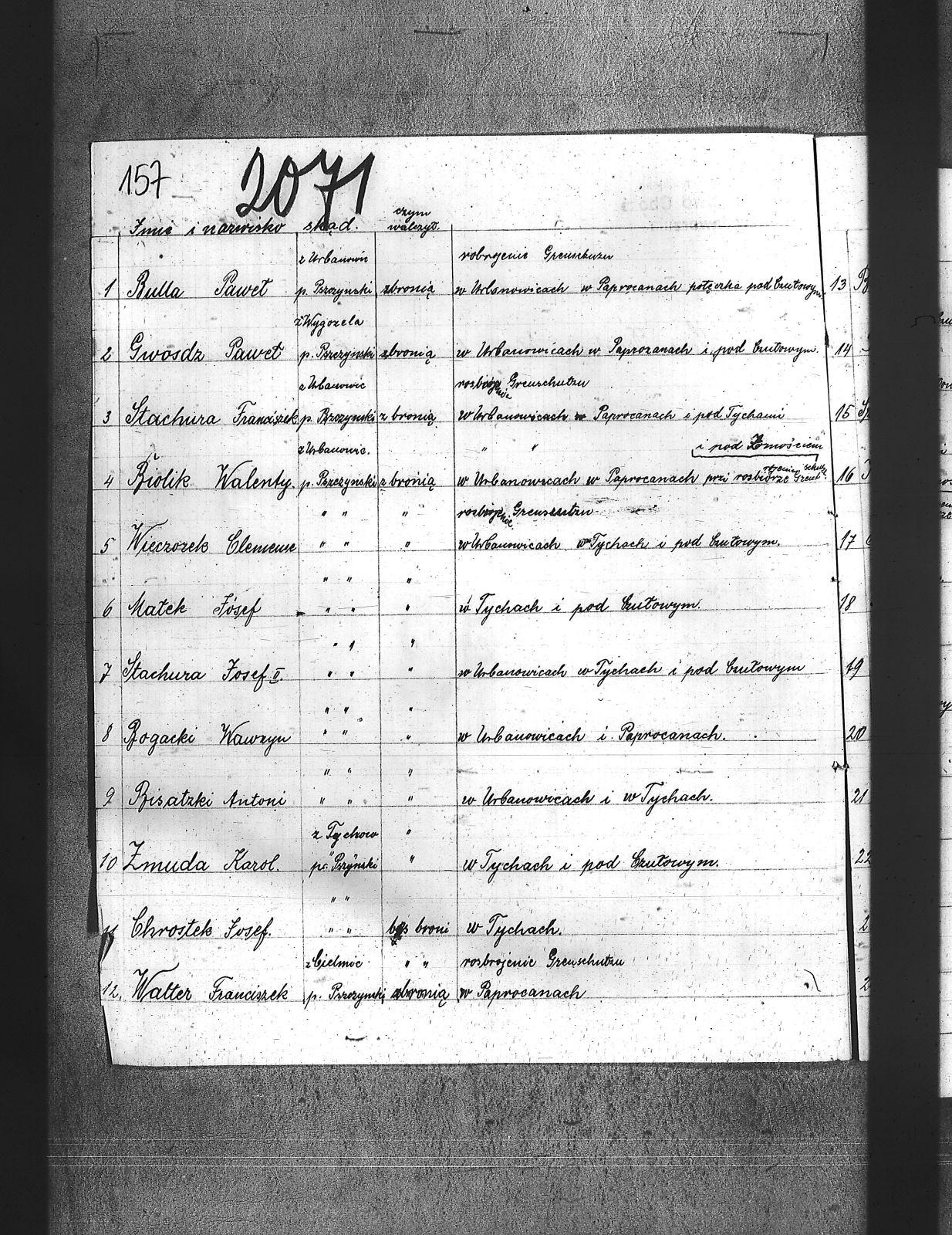 Balura, Jan; Balura, Paweł; Bednarek, Stanisław; Biolik, Walenty; Bisatzki, Antoni; Bogacki, Jan; Bogacki, Paweł; Bogacki, Wawrzyn; Brandys, Grzegorz; Buczek, Wilchelm; Bulla, Paweł; Chrostek, Josef; Gryc, Jerzy; Gwosdz, Paweł; Hros, Manek; Hros, Robert; Kamienski, Jan; Kostyra, Jan; Kozurek, Jan; Krobisz, Józef; Kroczek, Franciszek; Małek, Jóżef; Nimietz, Paweł; Pierchała, Robert; Pikos, Jan; Pilorz, Clemens; Rogalski, Wilchelm; Sierny, Józef; Simka, Ryszard; Siodmok, Wilchelm; Siwy, Franciszek; Sledziona, Jan; Smietana, Józef; Stachura, Franciszek; Stachura, Josef I; Stachura, Józef II; Szczepanek, Wizent; Tront, Ludwik; Tytko, Franciszek; Walter, Franciszek; Wieczorek, Clemens; Żmuda, Karol; |