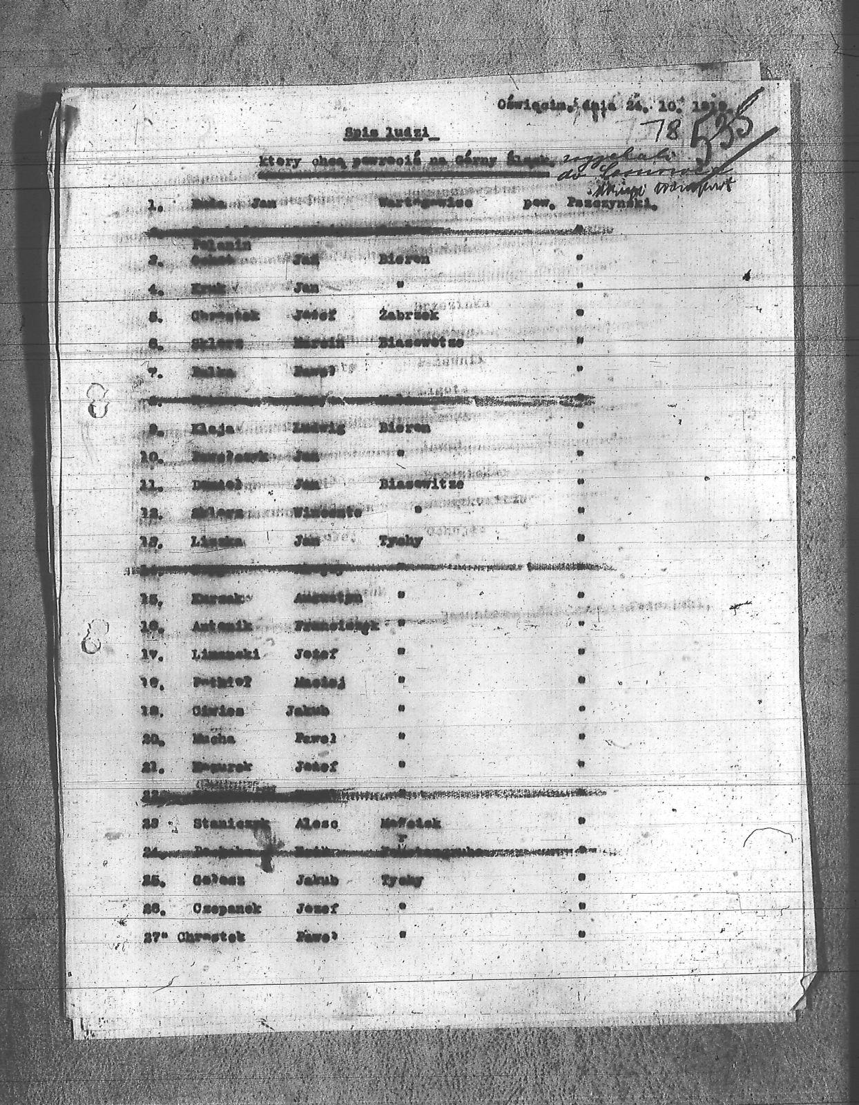 | Tytuł | Spis ludzi, którzy chcą powrócić na Górny Śląsk. |