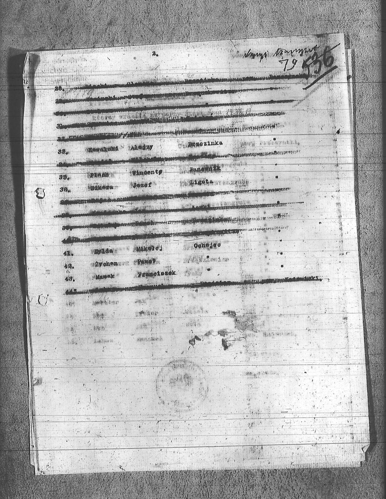 | Tytuł teczki | Lista zwolnionych lub komenderowanych obozu Oświęcim |