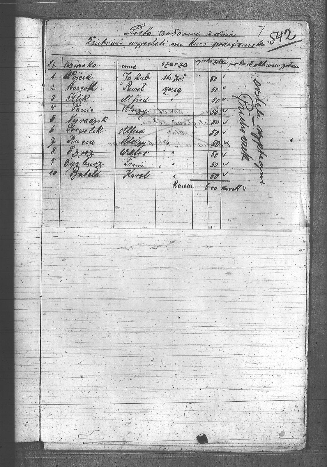 | Tytuł | Lista żołdowa osób, które wyjechały na kurs podoficerski. |