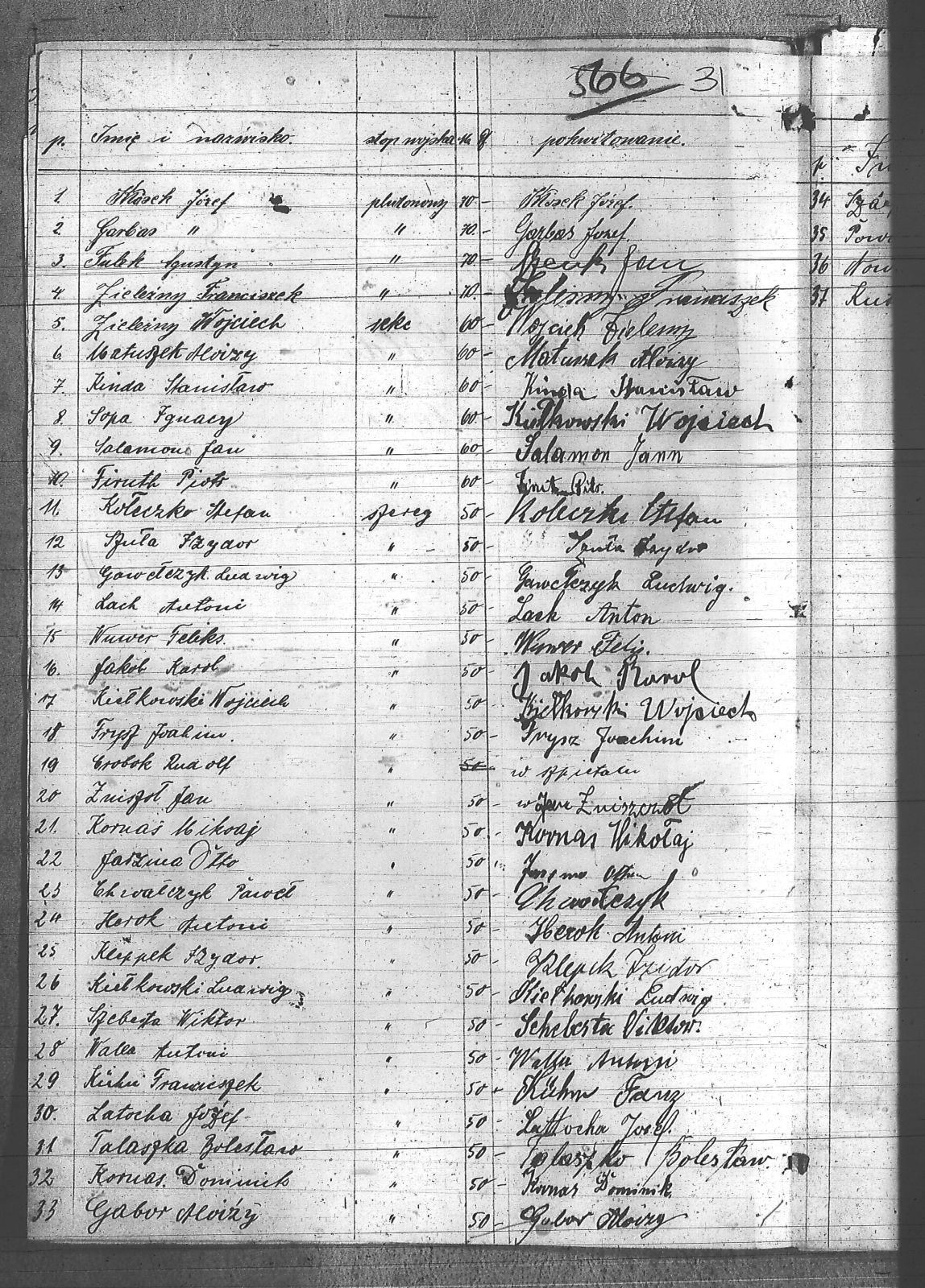 Chwałczyk, Paweł; Firuth, Piotr; Frysz, Joachim; Fulek, Augustyn; Gabor, Alojzy; Garbas, Józef; Gawełczyk, Ludwig; Herok, Antoni; Jakob, Karol; Jarzina, Otto; Kiełkowski, Ludwig; Kiełkowski, Wojciech; Kinda, Stanisław; Kleppek, Izydor; Kłosek, Józef; Kołeczko, Stefan; Kornas, Dominik; Kornaś, Mikołaj; Kuhn, Franciszek; Kutula, Ludwik; Lach, Antoni; Latocha, Józef; Matuszek, Alojzy; Nowak, Wilhelm; Powiecka, Alfred; Salamon, Jan; Sopa, Ignacy; Srobok, Rudolf; Szafer, Józef; Szeberta, Wilktor; Szuła, Izydor; Talaszka, Bolesław; Walla, Antoni; Wuwer, Feliks; Zieleźny, Franciszek; Zieleźny, Wojciech; Zniszoł, Jan; |