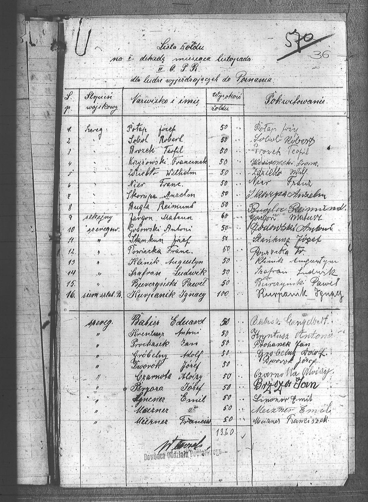 | Tytuł | Lista żołdu za I dekadę listopada dla ludzi wyjeżdzających do Poznania. II O.P.R. |