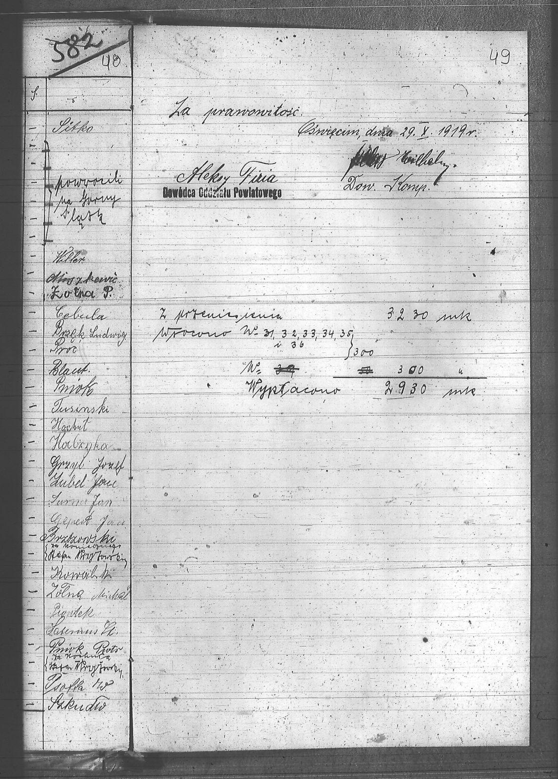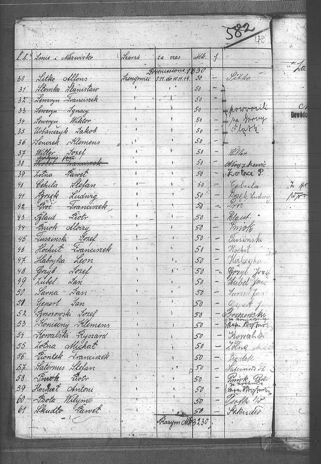 Baron, Jan; Baron, Konrad; Bialik, Józef; Blaut, Piotr; Brzęk, Ludwik; Brzozowski, Józef; Cebula, Stefan; Drabik, Józef; Drabik, Wilym; Duda, Franciszek; Fizia, Aleksy; Gepert, Jan; Golda, Franciszek; Gorgon, Teodor; Gryb, Józef; Grzechnik, Jan; Grzesica, Józef; Habryka, Leon; Hochuł, Franciszek; Jagoda, Józef; Jochymczyk, Walenty; Kiwadowic, Paweł; Kochuł, Antoni; Kocurek, Franciszek; Kocurek, Józef; Koniecny, Klemens; Kowalski, Ryszard; Krzystolik, Stefan; Lubel, Jan; Miszkowic, Jan; Mocko, Alojzy; Mosler, Walenty; Mucha, Paweł; Obracaj, Stanisław; Oleś, Paweł; Parysz, Józef; Pasek, Ludwig; Piontek, Franciszek; Pniok, Alojzy; Pniok, Piotr; Proc, Franciszek; Przybyła, Henryk; Psota, Wilym; Pucher, Józef; Radwański, Józef; Sarna, Jan; Saternus, Stefan; Senczek, Klemens; Seweryn, Franciszek; Seweryn, Ignacy; Seweryn, Wiktor; Sitko, Alfons; Skudło, Paweł; Sojka, Karol; Stolorz, Franciszek; Stomka, Stanisław; Tuszinski, Józef; Urbańczyk, Jakób; Urbańczyk, Jan; Willer, Józef; Zołna, Michał; Zołna, Paweł; |