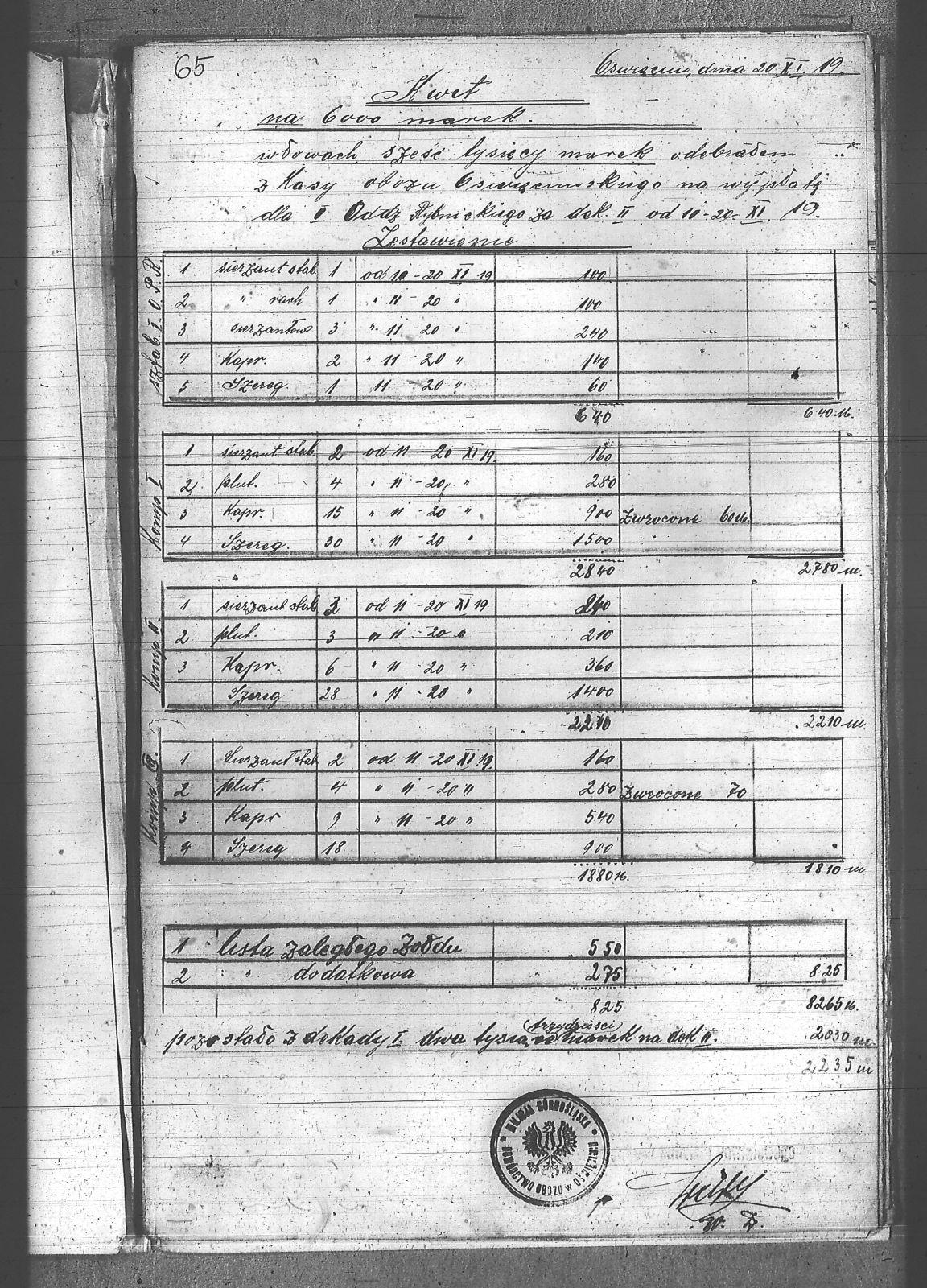 Tytuł teczkiListy żołdowe na miesiąc listopad [i dekadę grudnia] 1919 r.
