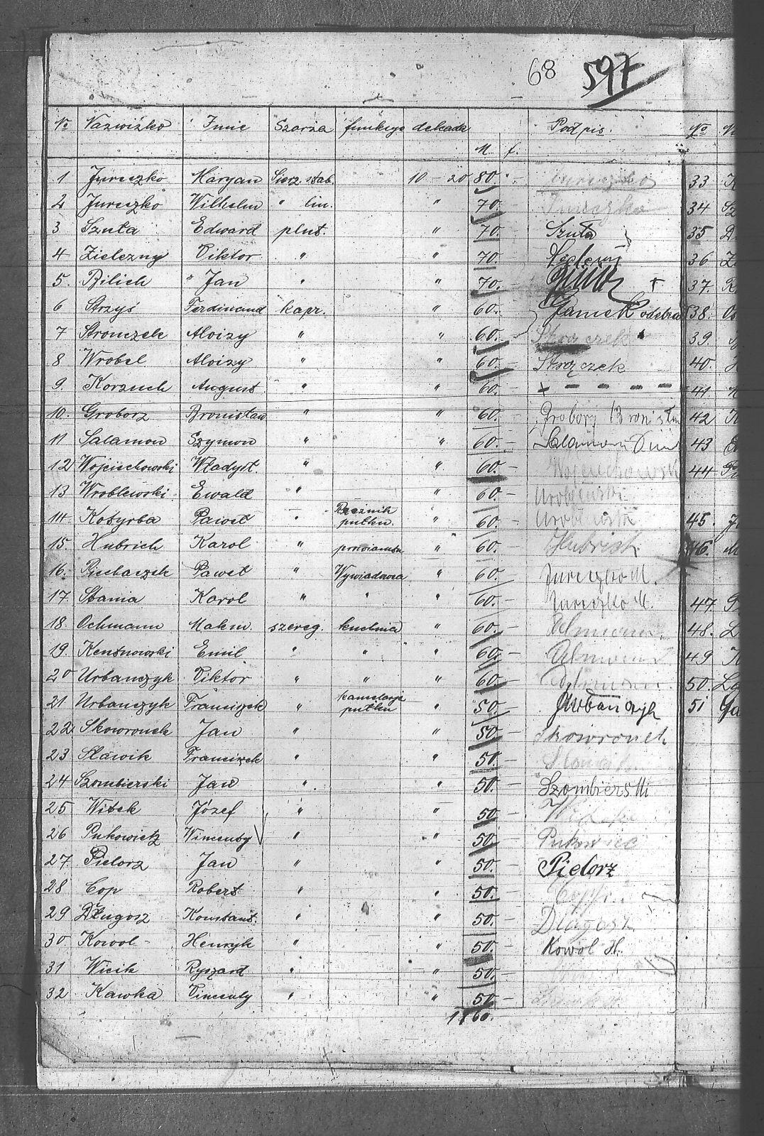 Bilich, Jan; Buchta, Jakub; Cop, Robert; Długosz, Konstanty; Dobrowolski, Antoni; Gawlik, Jan; Groborz, Bronisław; Heblik, August; Hubrich, Karol; Jordan, Wilhelm; Jureczko, Marian; Jureczko, Wilhelm; Kania, Alojzy; Kawka, Wincenty; Kentnowski, Emil; Korzuch, August; Kotyrba, Paweł; Kozłowski, Julian; Kwiaton, Walentin; Labus, August; Laniuszny, Maksymilian; Matuszczyk, Jan; Morawiec, Paweł; Ochmann, Maksymilian; Ostrowski, Jerzy; Pękala, Franciszek; Piechaczek, Paweł; Pielorz, Jan; Pietruszka, Leon; Pukowiec, Wincenty; Rzyczniok, Karol; Salamon, Szymon; Skowronek, Jan; Sławik, Franciszek; Stania, Karol; Stronczek, Alojzy; Strzyś, Ferdynand; Szombierski, Jan; Szubert, Stefan; Szuła, Edward; Urbańczyk, Franciszek; Urbańczyk, Wiktor; Wicik, Ryszard; Witek, Józef; Wojciechowski, Władysław; Wolnik; Wróbel, Alojzy; Wróblewski, Ewald; Zalwiczek, Franciszek; Zielezny, Wiktor; |