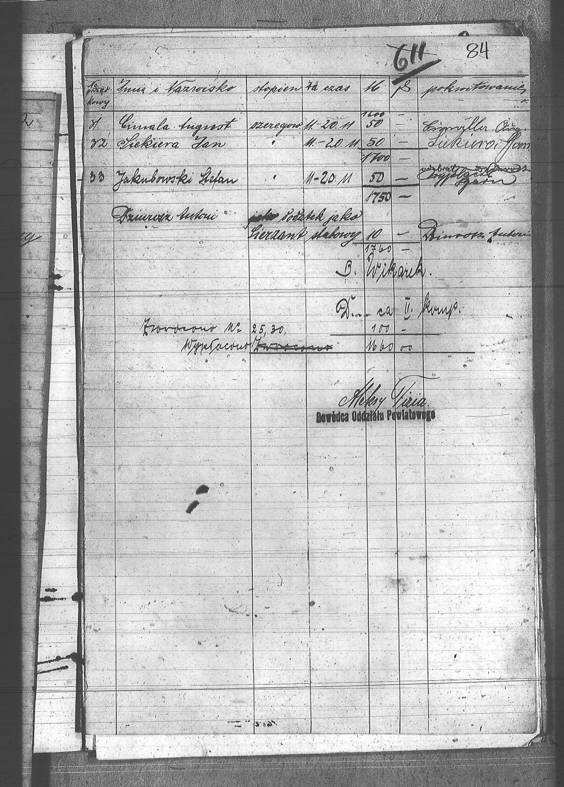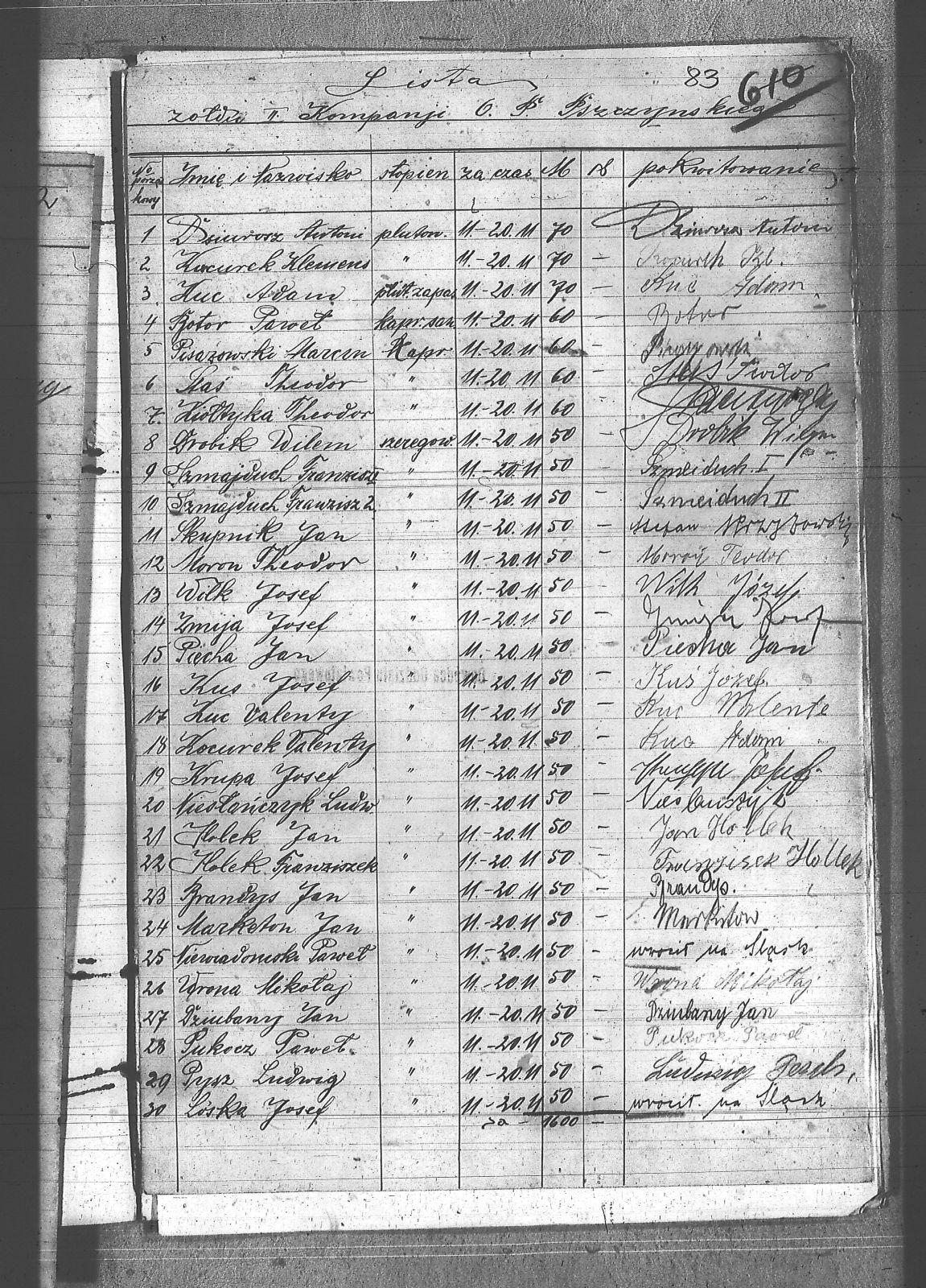 Botor, Paweł; Brandys, Jan; Cimala, August; Drobik, Wilem; Dziubany, Jan; Dziurosz, Antoni; Fizia, Aleksy; Holek, Franciszek; Holek, Jan; Jakubowski, Stefan; Kiołtyka, Teodor; Kocurek, Klemens; Kocurek, Walenty; Krupa, Józef; Kuc, Adam; Kuc, Walenty; Kuś, Jozef; Loska, Józef; Marketon, Jan; Moron, Teodor; Niesłańczyk, Ludwik; Niewiadomski, Paweł; Piecha, Jan; Pisażowski, Marcin; Pukocz, Paweł; Pysz, Ludwik; Siekiera, Jan; Skupnik, Jan; Staś, Teodor; Szmajduch I, Franciszek; Szmajduch II, Franciszek; Wilk, Józef; Wrona, Mikołaj; Zmija, Józef; |